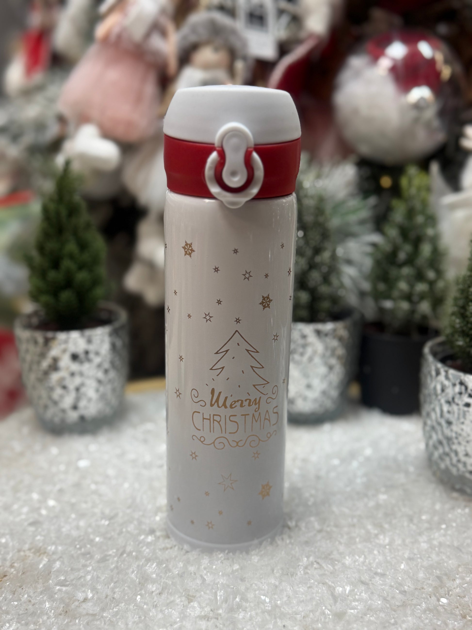 Бял термос с коледни мотиви