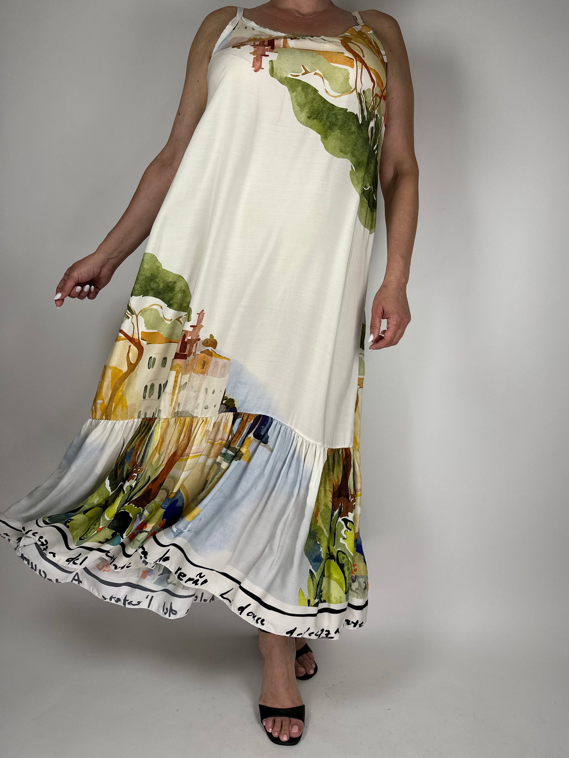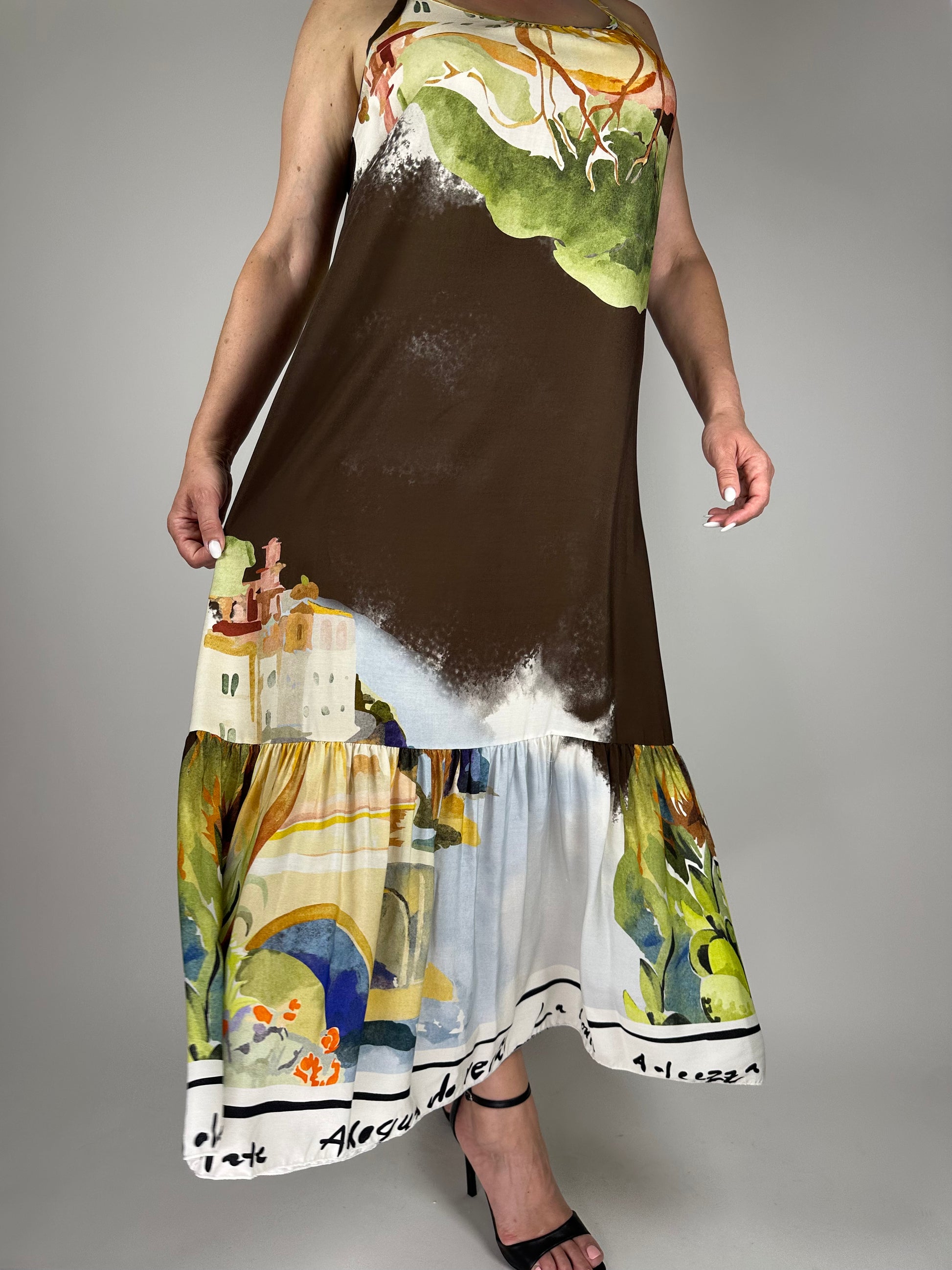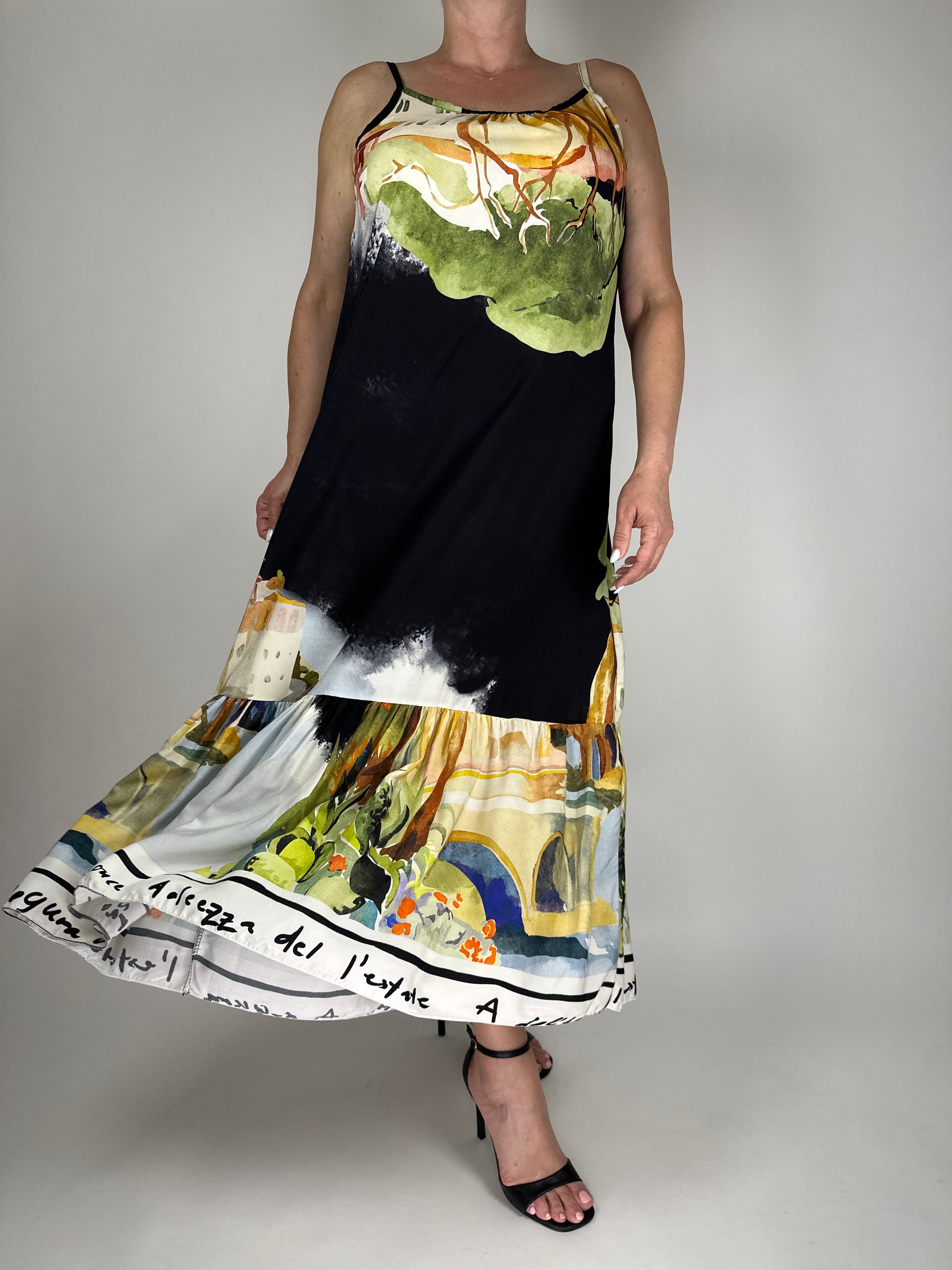 Дълга лятна рокля от висококачествена вискоза – изключително лека, ефирна и приятна на допир. Свободна кройка и цветен десен, който носи настроение и комфорт в топлите дни. Идеална за плаж, разходка или лятна вечер.