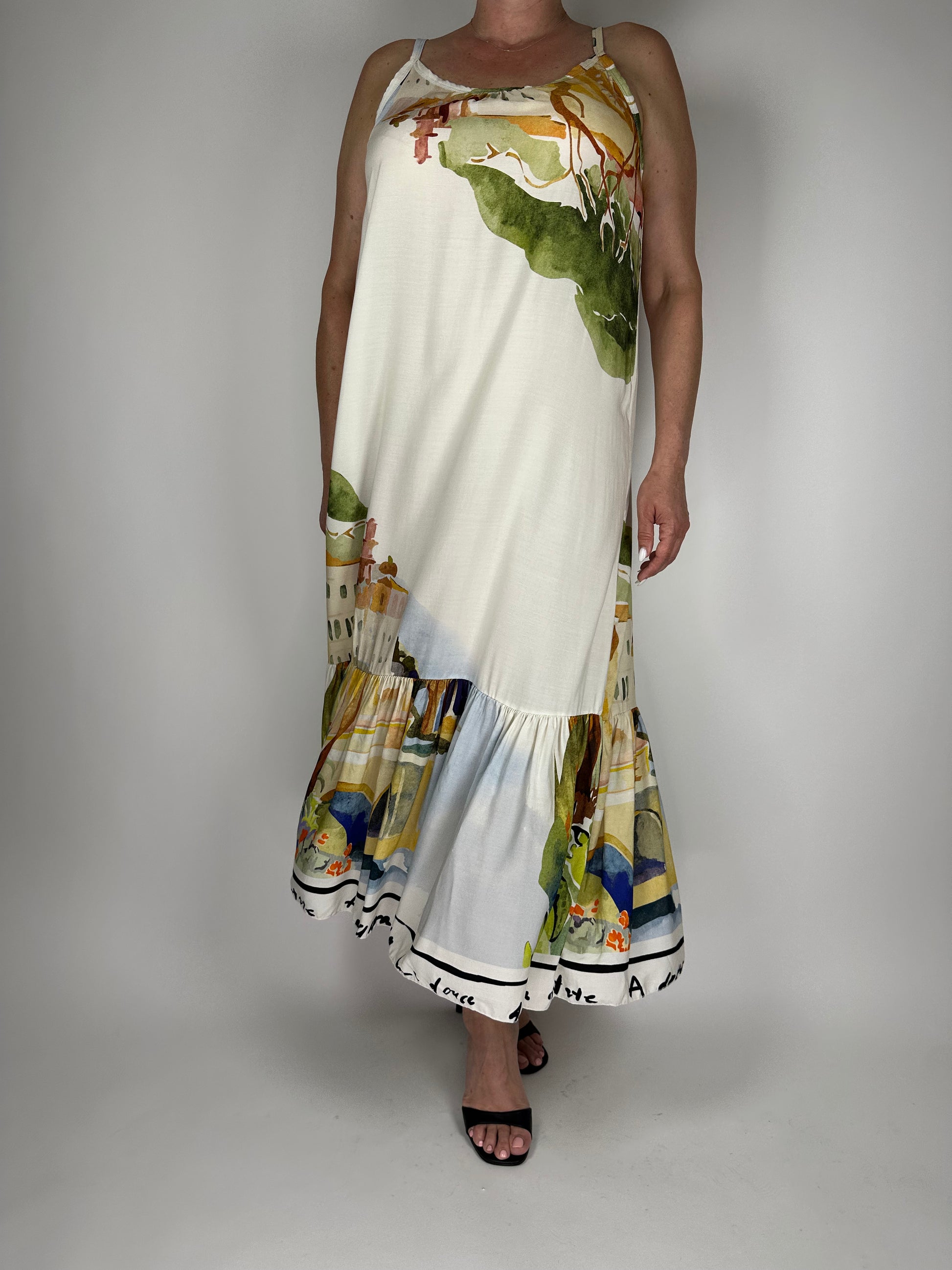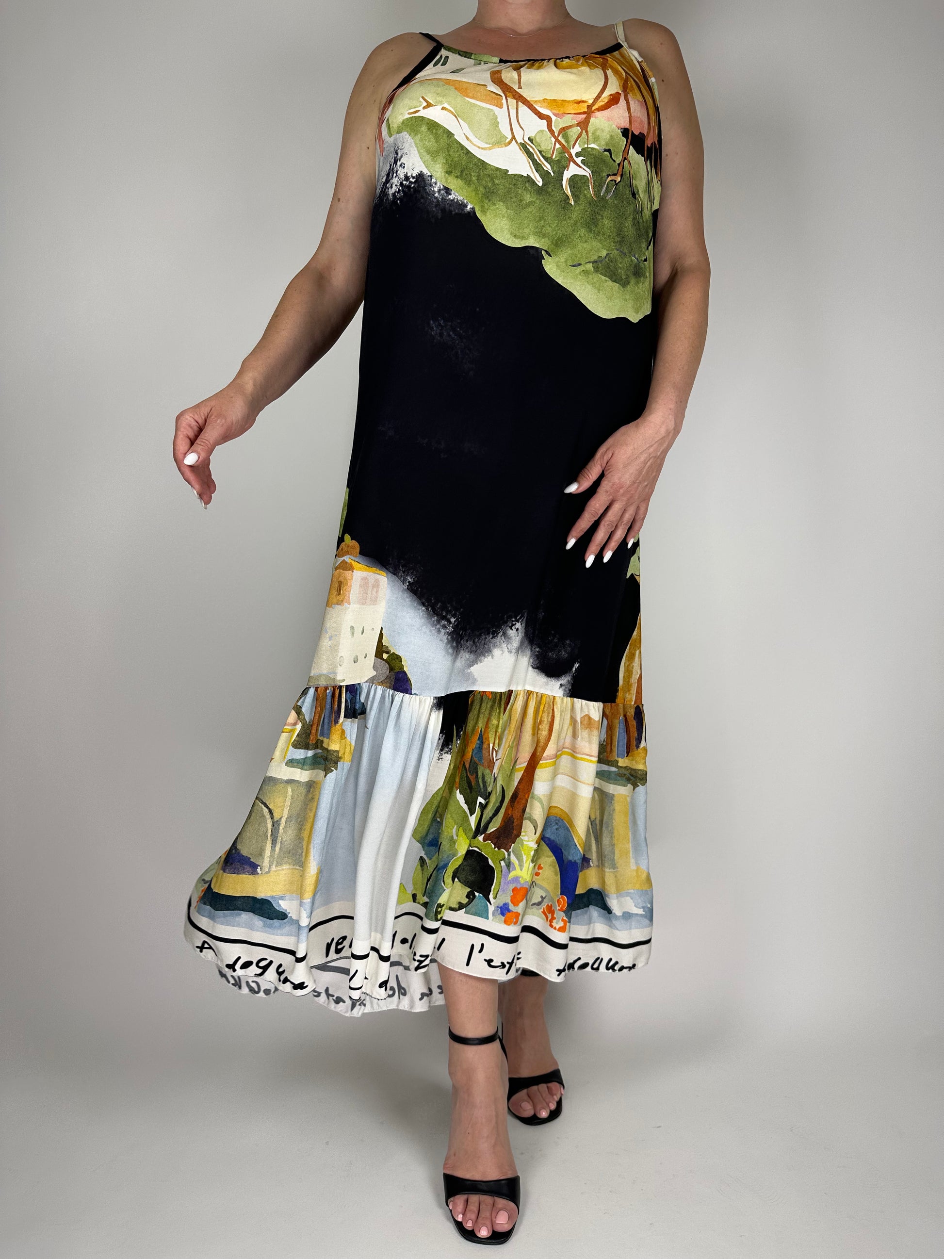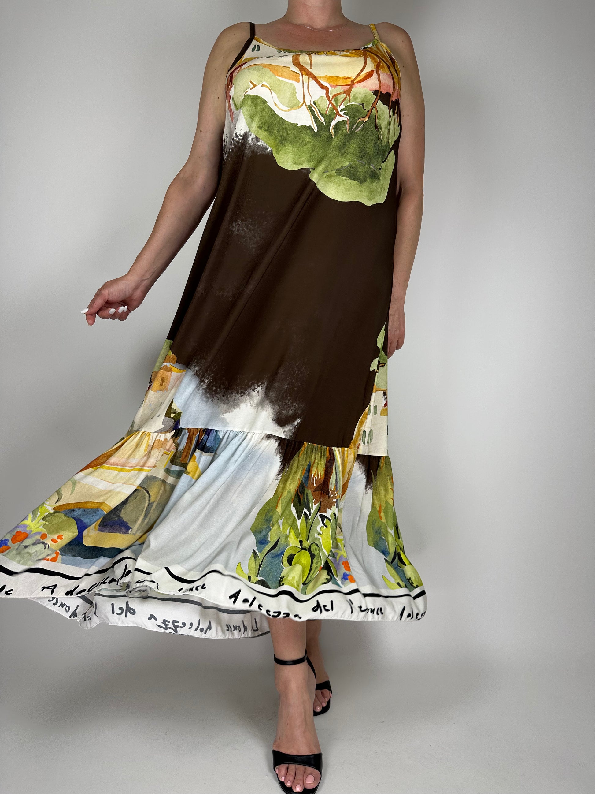 Дълга лятна рокля от висококачествена вискоза – изключително лека, ефирна и приятна на допир. Свободна кройка и цветен десен, който носи настроение и комфорт в топлите дни. Идеална за плаж, разходка или лятна вечер.