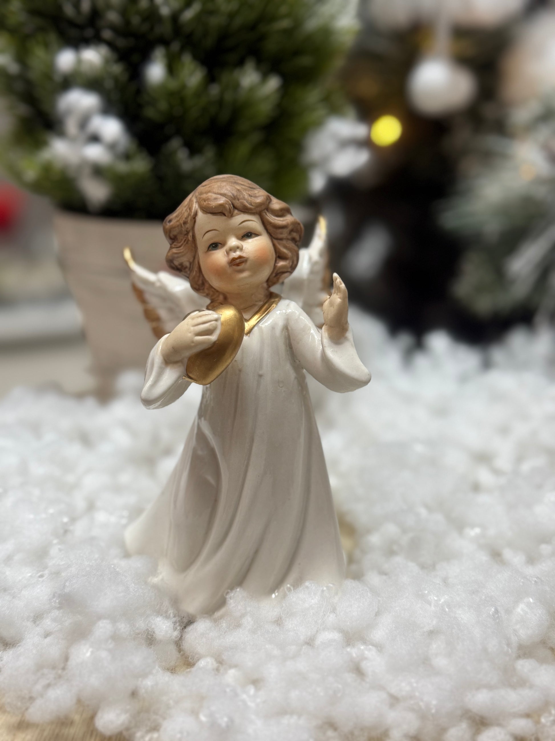 Декоративен коледен ангел, изработен от висококачествен порцелан с фини детайли. Подходящ за празнична украса на дом или офис, добавяйки нежност и елегантност към коледната атмосфера. Идеален и като подарък.