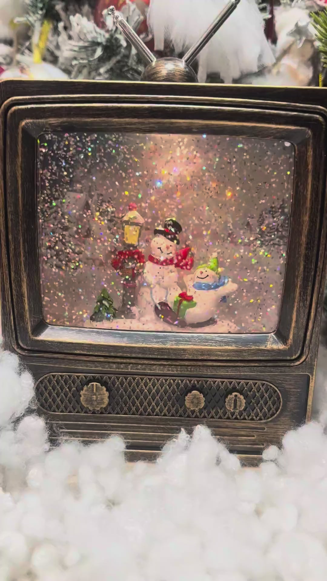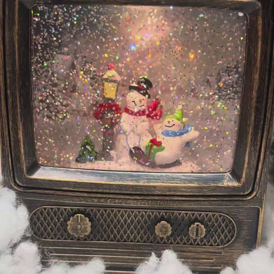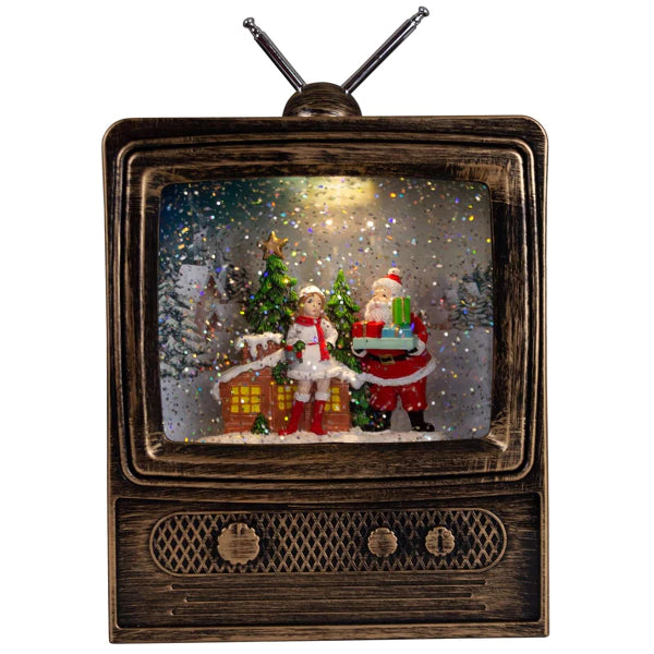 Коледен декоративен телевизор с глитер, музика и LED светлина – USB/ток и батерии