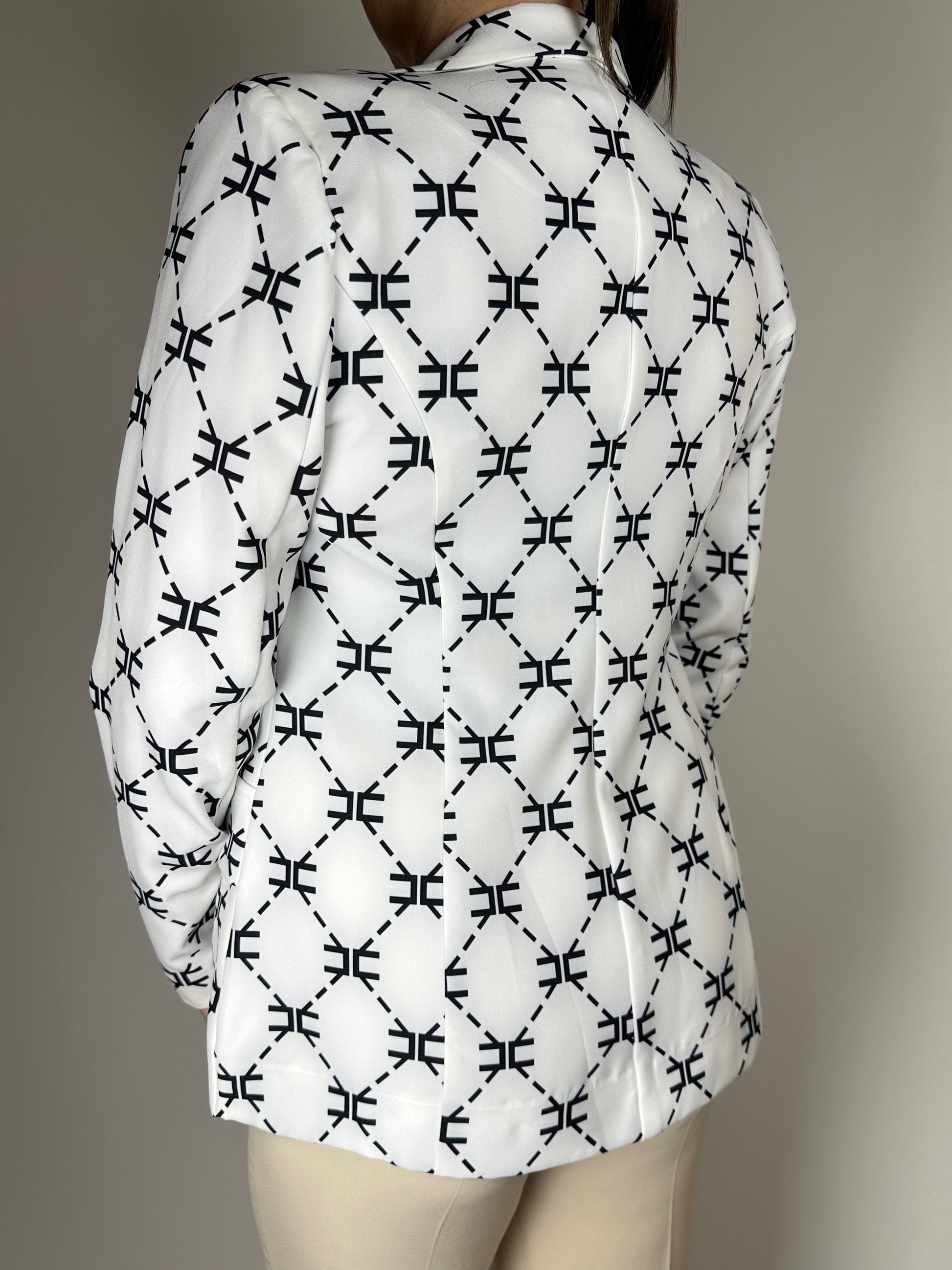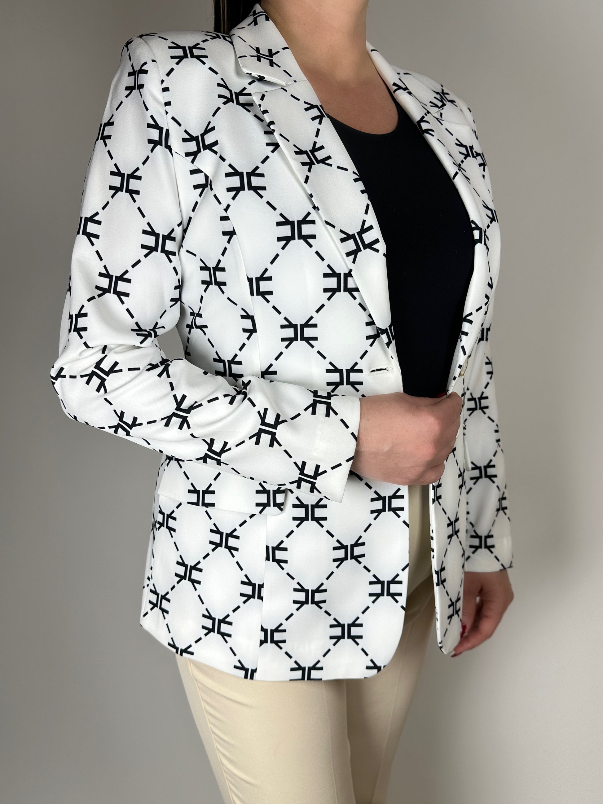 Елегантно сако с черно-бял принт, съчетаващо класика и модерен почерк. Перфектно допълнение към всяка изискана визия – за офиса, вечерни излизания или специални поводи. Лека и удобна кройка, която подчертава силуета с финес.