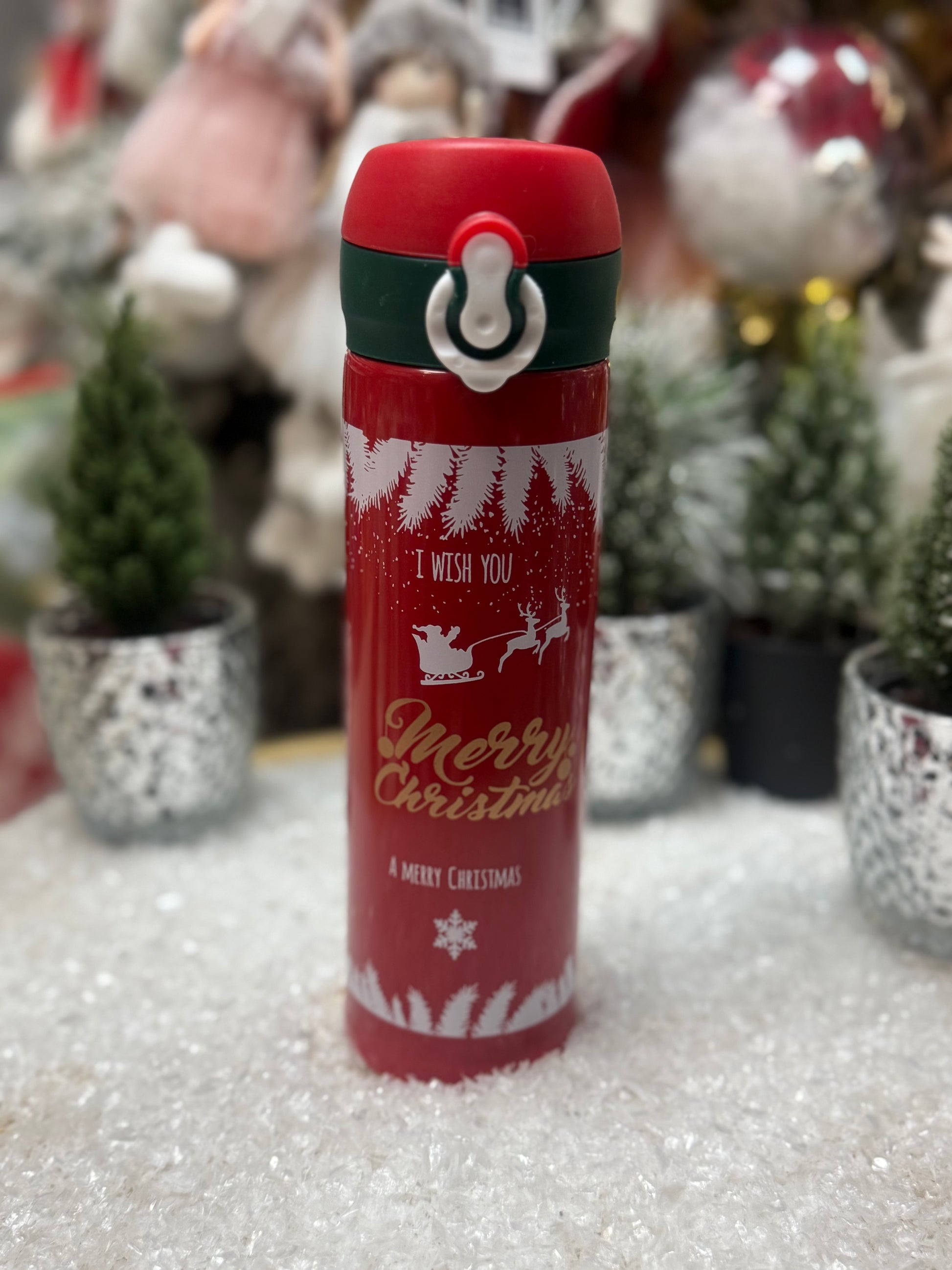 Червен термос с коледни мотиви